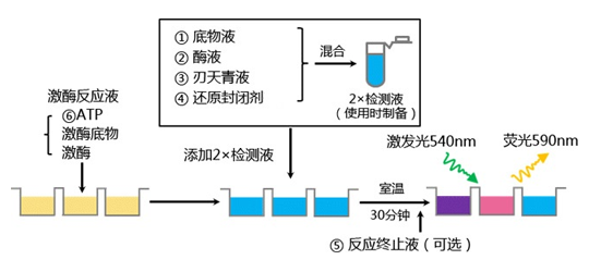 激酶反应液里添加等量的2×检测液(使用时制备)即可检测激酶活性