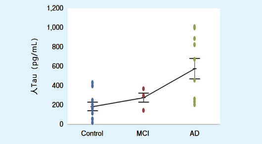 用本试剂盒检测非痴呆症(Control),轻度痴呆症患者(MCI),阿尔茨海默病患者(AD)的脑脊液。