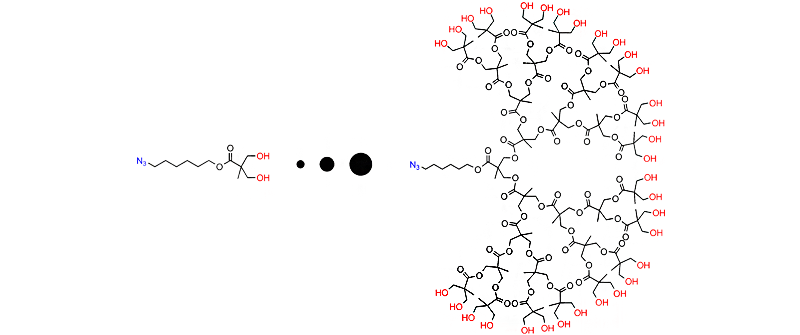 叠氮树突聚合物末端官能团有缩丙酮。叠氮树突聚合物可以耦合到树乙炔树突化合物形成不对称树枝状聚合物